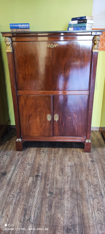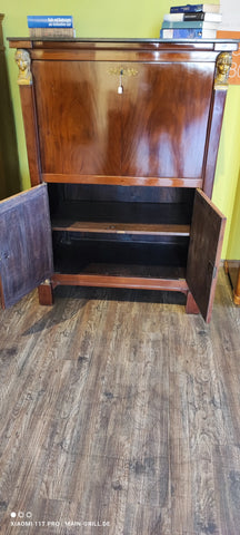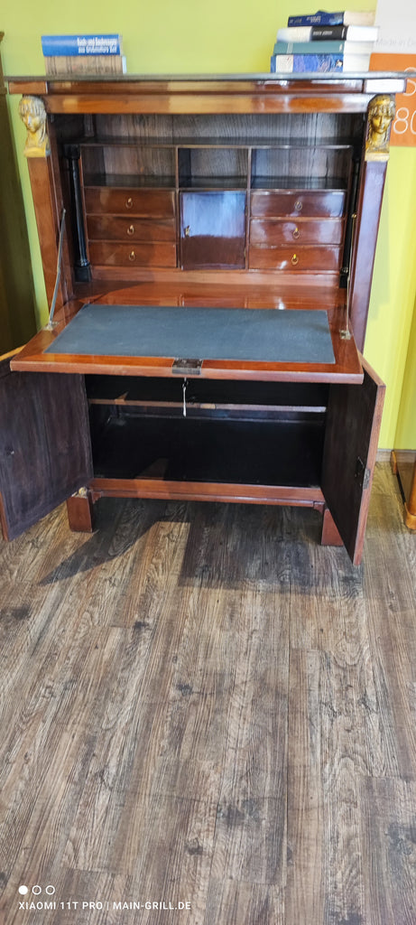 Schöner früher Biedermeier Sekretär aus Mahagoniefunier auf Weichholz.